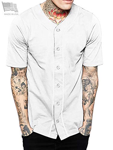 Made in USA Mens Premium Button Down Baseball Jersey Team Uniform Hip Hop Urban Tee Shirt