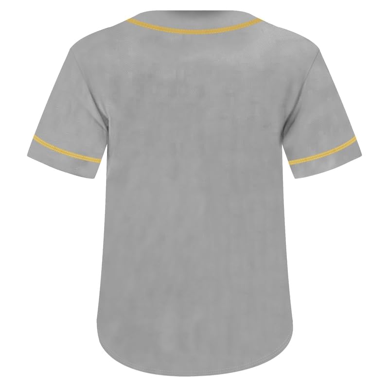 - Classic baseball jersey design with sewn gold ribbons.Classic baseball jersey design with sewn gold ribbons. More prominent and less rigid.